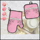 Manoplas Tiempo de hornear rosado y negro Oven Mitt Set