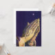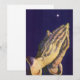 Ilustración vintage religiosa de diseño cristiano que presenta un par de manos de un anciano unidas en oración sagrada hacia el cielo y el cielo nocturno. En la tradición cristiana, la Estrella de Belén, también llamada la Estrella de Navidad, reveló el nacimiento de Jesucristo a los magos y luego los condujo a Belén. La pieza original fue Manos orando, también conocida como Estudio de las manos de un apóstol, creada por Albrecht Durer, alrededor de 1508.