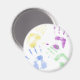 Imán de huellas amarillas, verdes y azules para ayudar a mantener todos tus dibujos, notas, fotos, etc. especiales.