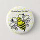 Un gran botón para reconocer a las madres de la madre y del padre. Ofrece una abeja del dibujo animado con encendido un fondo blanco y amarillo del lunar. ¡Sobre el bebé manosee la abeja que dice Abuela-A-Es! ¡Deje a esas abuelas orgullosas destacarse también!