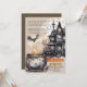 Eleva tu reunión de Halloween con esta invitación de fiesta espeluznantemente elegante. Meticulosamente elaborada, esta invitación evoca el espíritu misterioso de la temporada, combinando un enigmático caldero, una mansión escalofriante y murciélagos volando. Incluye un poema único para invitar a tus invitados, lo que distingue a esta invitación de las demás. Personaliza los detalles de la fiesta según el horario y el lugar de tu evento.