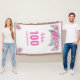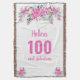 Elegante diseño para una fiesta de cumpleaños número 100 con un rosa "100 y fabuloso" y un nombre escrito adornado con flores de acuarela femeninas sobre un fondo blanco. edad, texto, nombre y color de fondo del personalizar.