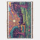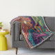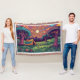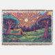 A psychedelic camping scene design throw blanket. You can wrap yourself up in it when your sitting round the campfire