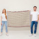 A woven blanket with a red and green polka dot pattern on a beige background, shown in horizontal and vertical orientations. The edges are fringed.