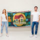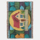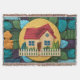 Un fascinante patrón de ícono de casa con una casa encantadora con un techo rojo y una valla de piquete blanco. La casa se encuentra en un ambiente acogedor y acogedor, rodeado de una gran variedad de texturas y colores. El patrón incluye una manta de lana, lo que aumenta la sensación general de calidez y comodidad