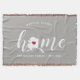 Muestra orgullo por tu estado natal con esta adorable manta gris rústica que presenta "hogar" en letra de caligrafía blanca con un mapa en silueta del estado de Alaska en lugar de la letra "O". Una ilustración de corazón rosa dentro del mapa del estado completa el diseño; puedes cambiar la posición del corazón a tu ciudad natal abriendo la herramienta de diseño y arrastrando la forma del corazón a tu lugar favorito. Personaliza con tu ciudad natal, nombre de familia y año de fundación para crear un regalo de inauguración perfecto y memorable o un complemento para tu nuevo hogar.