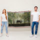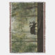Un ilustracion de una silueta de los alces/de los alces con las astas en el gráfico de vector del bosque. En verdes y marrones del grunge. Caza y diseño de la imagen de los cazadores. Paisaje salvaje de la vida.