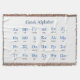 Letras griegas fundas inferiores y superiores con sus nombres. Objeto vectorial con colores personalizados para títulos, letras y nombres de letras. Color de fondo personalizado.