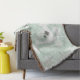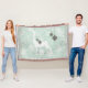 All is Calm All is Bright holiday throw blanket, features a light blue background with lots of pretty white snowflakes, gray text that reads All is Calm All is Bright, and a silhouette white deer with ornaments hanging from his antlers! This pretty holiday throw is a great gift for yourself or someone you love and will become part of your Christmas traditions!