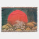 Elegante, colorido paisaje marino con sol amarillo, olas de mar en vivos colores negro, verde y blanco re-elaborados de una antigua miniatura japonesa. Amaterasu es parte del ciclo del mito japonés y también una deidad importante de la religión Shinto. Ella es la diosa del sol, pero también del universo. El nombre Amaterasu deriva de Amateru que significa "brillar en el cielo". El significado de su nombre completo, Amaterasu-ōmikami, es "el gran kami de agosto (dios) que brilla en el cielo". Para Amaterasu también se le atribuye la invención del cultivo del arroz y el trigo, el uso de gusanos de seda y el tejido con el telar.