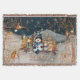 Hermosa colina de nieve de Navidades y cielo azul oscuro con adorables personajes y elementos dorados. Ideal para niños/sala de estar. Las ardillas, Snowman, un chica y un bebé, un zorro, ratones, una lechuza, cuervos y un pájaro pequeño traerán el espíritu de los Navidades correctos. Colóquelo en el sofá o en la cama de los niños. Haría un gran regalo para los Navidades o una pieza decorativa.