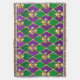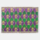 joyas, fondo del Mardi Gras de rhombus violeta y verde, lirios dorados decorados.