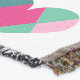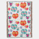 Esta manta de tiro tiene un diseño Art Déco de corazones hechos de diamantes en tonos rosas, azules, verdes, dorados y rojos.