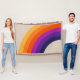 Ilustracion abstracto del diseño de arco iris de estilo retro en colores amarillo, púrpura, azul y naranja sobre fondo beige