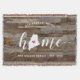 Muestra orgullo por tu estado natal con esta linda manta de lanzamiento de tablones de madera rústicos falsos que presenta "hogar" en letras de caligrafía blanca con un mapa en silueta del estado de Maine reemplazando la letra "O". Una ilustración de corazón rosa dentro del mapa del estado completa el diseño; puedes cambiar la posición del corazón a tu ciudad natal abriendo la herramienta de diseño y arrastrando la forma del corazón a tu lugar favorito. Personaliza con tu ciudad natal, nombre de familia y año de establecimiento para crear un regalo de inauguración perfecto y memorable o un complemento para tu nuevo hogar.