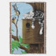 Un lindo gato tabby está durmiendo en un pajar de madera. Los pájaros que residen allí no están satisfechos