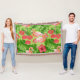 Patrón pintado con hojas de color agua de monastera, flores de hibisco, flores de flamingo y aves