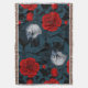 Manta Aves y flores de peón rojo con hojas azules