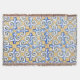 Las baldosas tradicionales pintadas a mano crean un diseño único. Pintura de azulejo español con motivos geométricos azules y amarillos. El diseño decorativo perfecto, la decoración casera ideal o el regalo para cualquier ocasión.