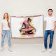 Diseño de una bailarina arrodillada durante su recital. Imagen creada con nubes amarillas y rosadas de color en el fondo, fusionándose con la figura de la bailarina.