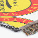 Insignia de Barcelona con bandera de España de colores, forma redondeada. Emblema de Barcelona España. Sello de Barcelona España. Etiqueta de Barcelona, Parche de Barcelona.