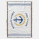 Manténgase cálido y acogedor envuelto en esta manta de tiro con temática náutica con su bienvenida personalizada a bordo del saludo y su nombre de barco, apellido u otro texto deseado. Cuenta con un ancla de barco vintage de diseño personalizado enmarcado en hojas de laurel de estilo dorado y estrella para completar el diseño. Viene en blanco o cambia fácilmente el color principal para que coincida con la decoración o el tema actual.