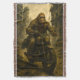 Epic vibes only. This bold and cinematic blanket design features Bigfoot tearing through a post-apocalyptic wasteland on a motorcycle, wearing a tattered leather trench coat and dark shades. The ruined city skyline looms in the background as he rides through like a lone antihero in a dystopian movie. With its gritty energy and rugged color palette, this is a must-have for lovers of motorcycles, cryptids, and end-of-the-world adventures. Whether thrown over your couch, bed, or man cave recliner, it delivers comfort and style with a rebellious edge.