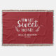 Una manta acogedora con las palabras Hogar dulce hogar y su nombre y fecha de boda. Personalice esta manta de lanzamiento roja y blanca para un hermoso regalo boda. Hay otros colores disponibles. Diseñado para ti por Blackberry Boulevard.
