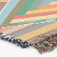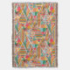 Esta manta de tiro tiene un diseño Boho de diamantes con diferentes patrones en entonces en una paleta de colores Boho.