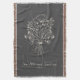 Boho Flower Line Art Drawing Monogrammed Wedding Throw Blanket in Soft Black