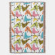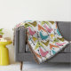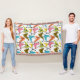 Esta manta de tiro tiene un diseño moderno de mediados de siglo de bumerangs dispersos por todos lados con segmentos que los atraviesan.