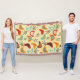 Esta manta de tiro tiene un diseño moderno de boomerang de mediados del siglo XX en colores y estrellas de los años 70.