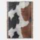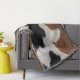 Throw blanket design featuring an Image of brown, black, and white cowhide texture print.
