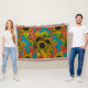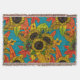 Ramo de girasoles dibujado a mano, hojas de otoño, arándanos y moras y escarabajos