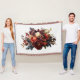 Una hermosa manta de flores oscuras y malhumoradas con flores de color burdeos, marrón, azul oscuro, púrpura, coral y blanco.