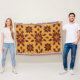 Una roseta clásica de hojas a rayas como plumas de pavo contra un fondo de marihuana.