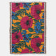 Patrón vectorial dibujado a mano con flores rojas de amapola y flores azules