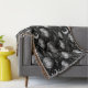 Una manta de patrón blanco y negro de Halloween que presenta calabazas intrincadamente esbozadas, murciélagos disparados, telarañas detalladas y acentos celestes como estrellas y una luna creciente. El trabajo en línea a mano y los espeluznantes elementos nocturnos crean una estética atemporal y espeluznante perfecta para diseños góticos e inspirados en el otoño.