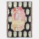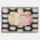 Camper rosa lindo en el dibujo de arte digital de la playa para los amantes de la vida viajera. Color de fondo personalizado.