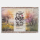 La manta de hilaza con las inspiradoras escrituras de citas representa un hermoso fondo natural que incluye un prado rodeado de árboles. Presenta un querido Verso de la Biblia de la Canción de Salomón 3:4, "He encontrado al que ama mi alma".