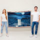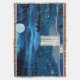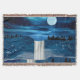 Escena paisajística abstracta de una cascada de agua con luna, pájaros, cielo nocturno y estrellas.