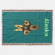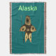 Imagen fractal de tono marrón que sugiere a un cazador inuit altamente estilizado, usando ropa de piel tradicional, sosteniendo un arpón con la cabeza de marfil. El texto que dice "Alaska" aparece en verde brillante y blanco.