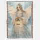 A serene celestial angel stands amid a quiet winter woodland, her soft wings glowing like dawn as she holds a warm lantern that gently lights the snow around her. Pale blues, creamy whites, and delicate golden sparks create an atmosphere of stillness and wonder, while intricate lace details on her gown add a tender, heirloom-like charm. This design brings together the peaceful hush of a snowy forest, the gentle symbolism of hope carried by a lantern’s glow, and the timeless grace of an ethereal guardian figure. Perfect for winter themes, spiritual sentiments, seasonal serenity, and cottage-style holiday imagery, this artwork offers a comforting presence that feels both nostalgic and enchanting. AI generated artwork.