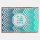 Elegante fondo de degradado verde azul y chevron Zigzag blanco. Monograma personalizado.