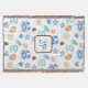 Una manta monogramada. Maravillas con temática azul y marrón, cangrejos, almejas, dólares de arena y otras divertidas criaturas náuticas.