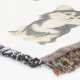 Una hermosa ilustración en acuarela detallada de un chihuahua tricolor negro y bronceado de pelo largo colocado en filas alegres. Este diseño destaca lo suficiente para piezas independientes, pero también puede servir como neutral.