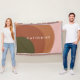 Sencilla y moderna alfombra de área geométrica con colores de tono de tierra con texto personalizado para añadir su propio nombre.