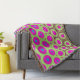 Un diseño retro de los años 70 con círculos de neón rosa sobre un fondo verde y marrón