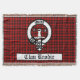 Insignia escudo del Clan Brodie escocés y texto sobre el fondo tartán del clan