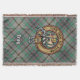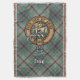 Clan Craig crest badge surrounded by a strap and buckle over tartan background. Custom text.